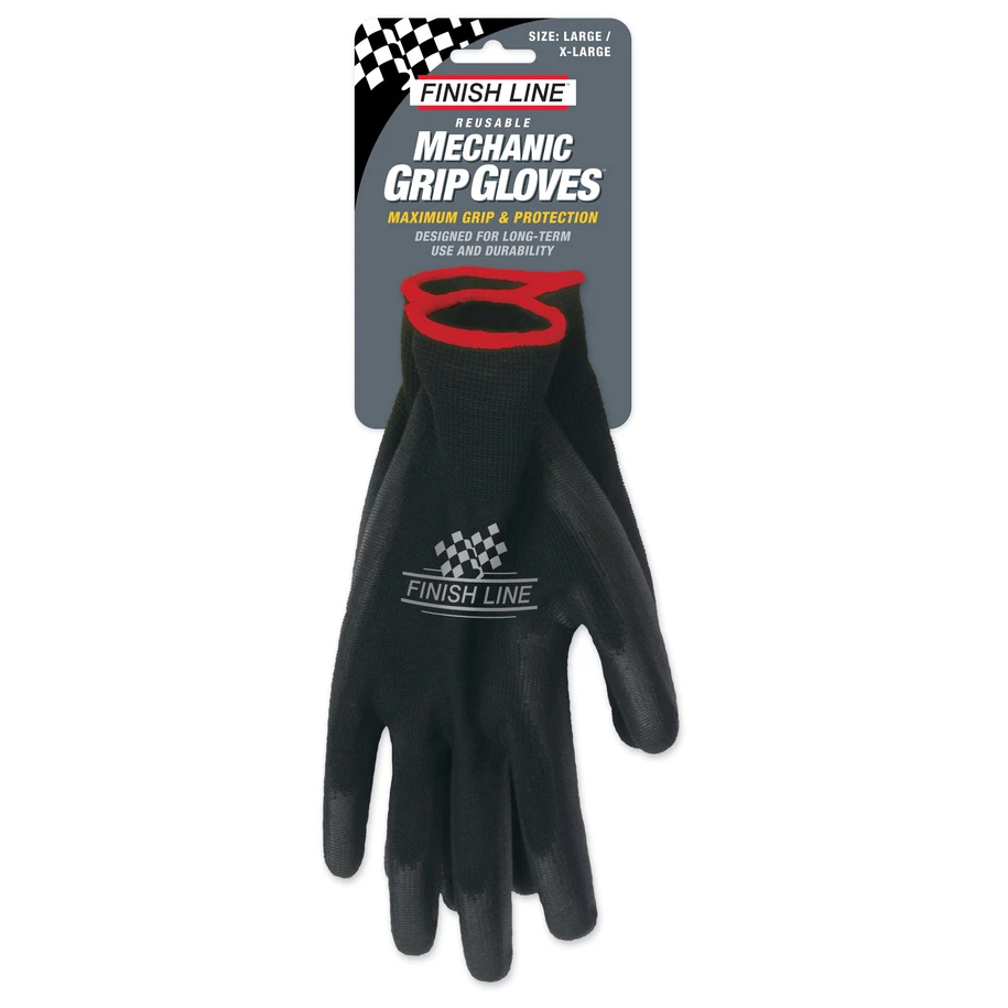 Die Mechaniker-Handschuhe schwarz von Finish Line sind ideal für das Arbeiten am Fahrrad geeignet. Sie halten Schmutz und Öl von den Fingern fern und schützen vor scharfkantigen Kettenblättern. Durch die griffige PU-Beschichtung fällt einem das Hantieren mit kleinen Bauteilen leichter und schrauben können leichter fixiert werden.