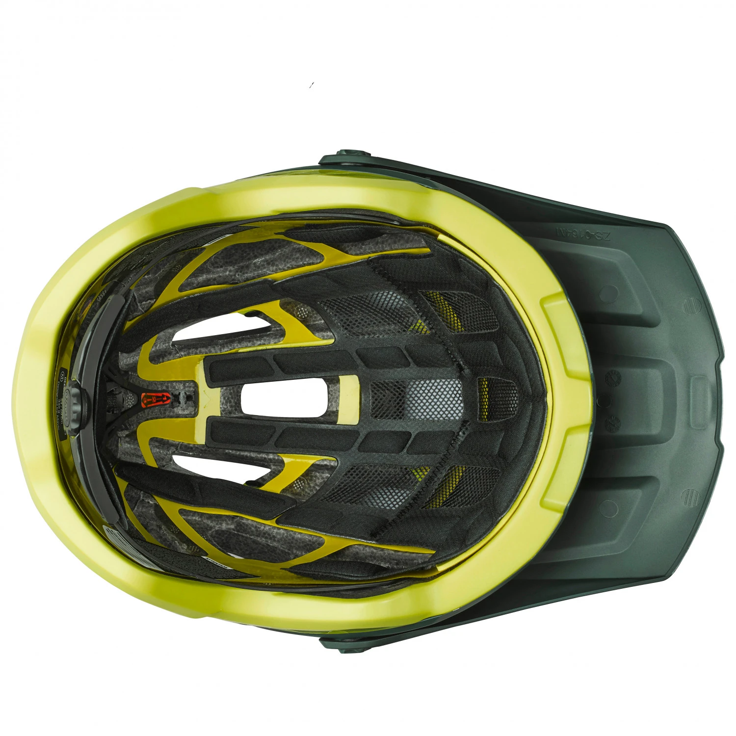 Der Radhelm Deemax Pro MIPS von Mavic kombiniert Funktionalität mit gutem Aussehen. Er bietet durch die integrierte MIPS-Technologie Schutz und Sicherheit für den Kopf und gleichzeitig wartet er mit einem frischen und sportlichen Look auf. Dieser rührt auch von den großen Luftlöchern her, welche dafür Sorge tragen, dass keine starke Hitze unter dem Helm entstehen kann, sondern ein kontinuierlicher Luftaustausch besteht. Das wiederum trägt zu einem angenehmen Tragegefühl und einem hohen Komfort auch bei langen Touren bei. Das verstellbare Visier vorne schirmt die Augen ein wenig ab und sorgt für eine bessere Windschnittigkeit. Dieser Mountainbike-Helm ist optimal für aufregende Abfahrten geeignet, bei dem sicherer Schutz absolut notwendig ist.