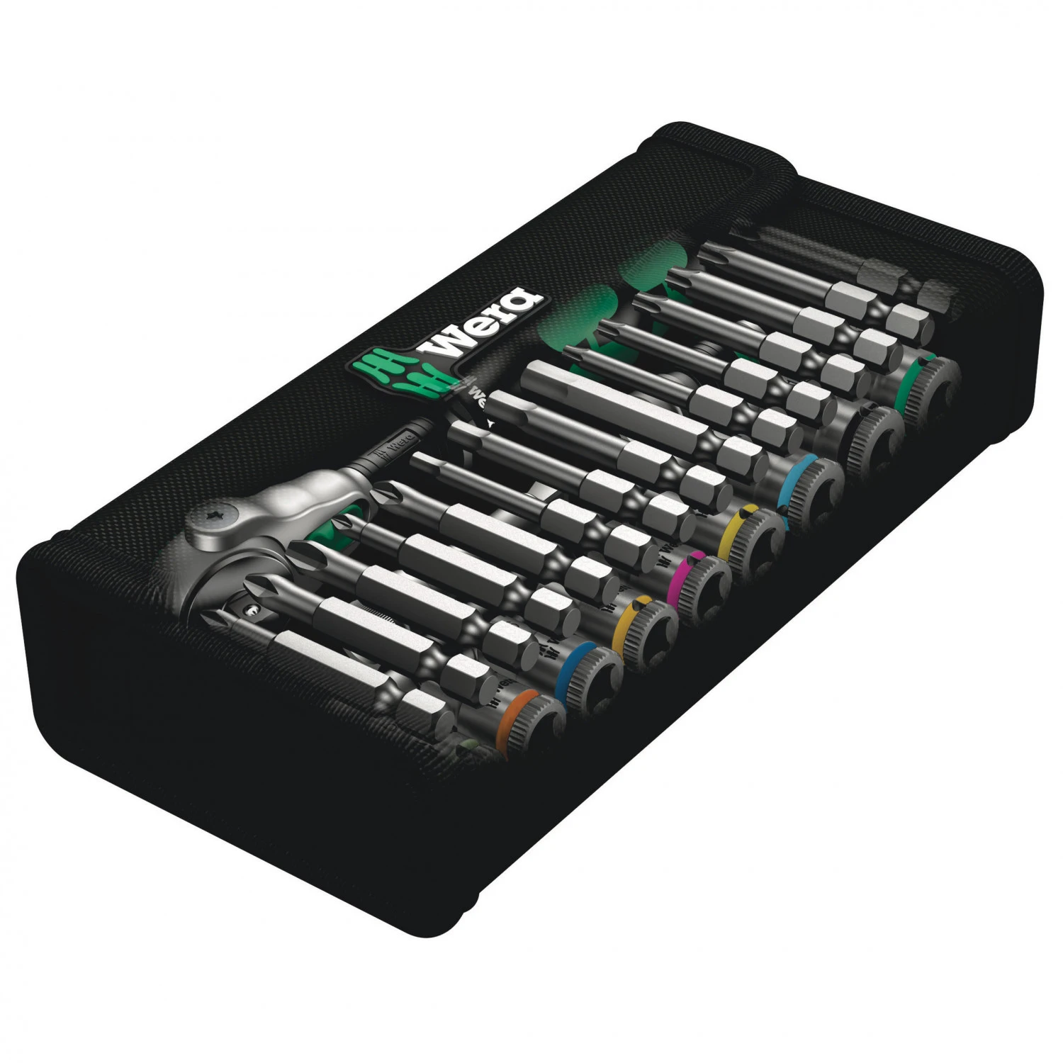 Der Wera Zyklop Speed-Ratsche 8100 SA 6 ist ein umfangreiches Werkzeug-Set in einer textilen Aufbewahrungstasche. Die Ratsche ist mit einem 1/4″ Vierkant-Antrieb ausgestattet und kann Vierkant-Steckschlüsseleinsätze und andere Verbindungsteile mit Vierkantantrieb und Kugelarretierung aufnehmen.